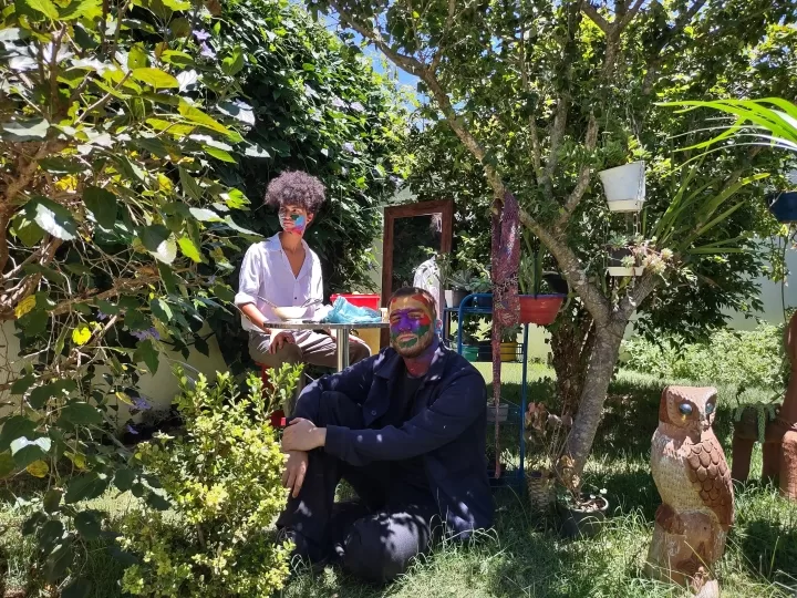 Idealizado por amigos de infância, a cajupitanga é um duo de Vitória da Conquista, na Bahia. Os músicos, Gabriel Tupy e Pedro “Candioco” Antunes, não moram mais na cidade e se projetaram para grandes centros – Gabriel está em BH, enquanto Candioco foi para a capital, Salvador. Mas, segundo eles, o jeito de compor e produzir segue com aspectos do interior. “Estávamos em Vitória da Conquista quando a cajupitanga começou e a gente ainda se reconhece como estando lá, tudo que a gente faz é como se estivéssemos lá, porque querendo ou não, é uma parte da nossa ideia de composição.”